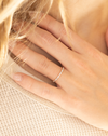 The Diamond Baguette Ring features an alternating pattern of baguette and round lab-grown diamonds, each handset in solid 14k gold for a refined, radiant finish. Designed with a slim 1.1 mm band, it’s the perfect piece to wear solo or stacked — effortlessly elegant from every angle.