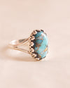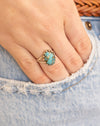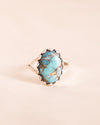 The Trixie Ring features a vibrant sky blue stone with natural brown and gold veining, giving it an earthy, organic feel. It’s framed by a delicate scalloped bezel that adds a subtle vintage touch, and finished with a split silver band that keeps it feeling light and wearable while still making a statement.